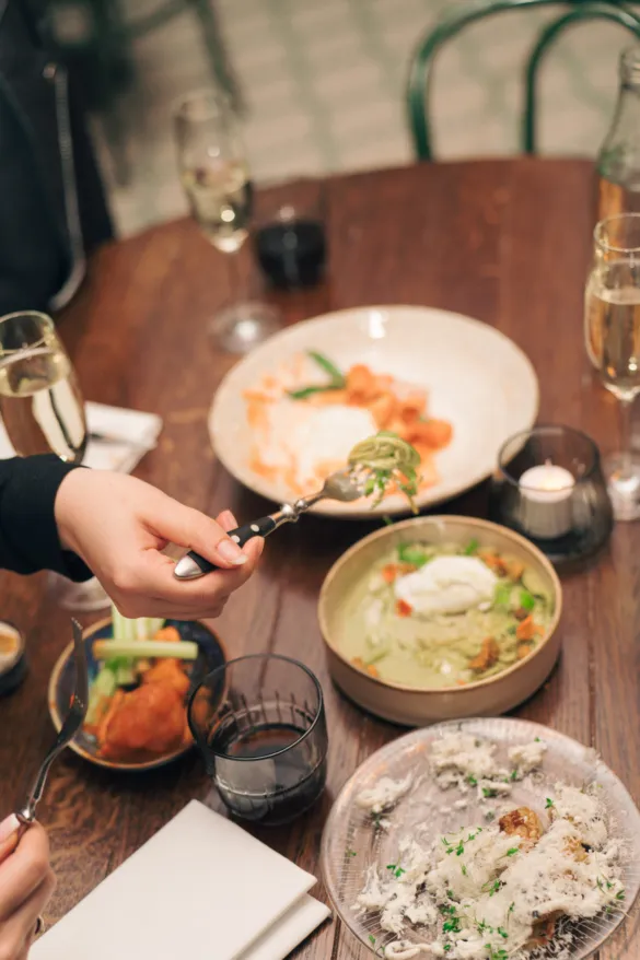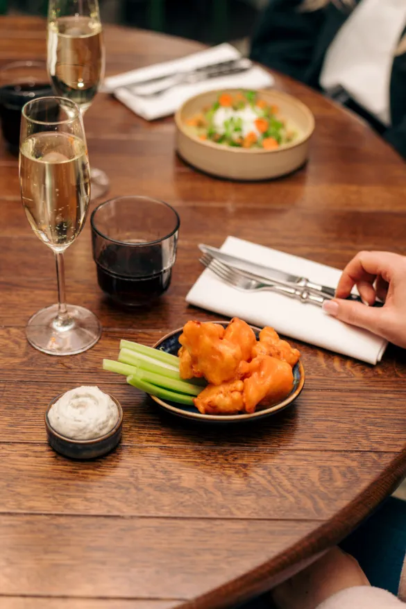 Backstage Brasserie serves classic brasserie dishes with European influences, prepared for sharing or enjoying on your own. The atmosphere is social and easy — suited for a long dinner, a quick bite, or a late glass of wine.