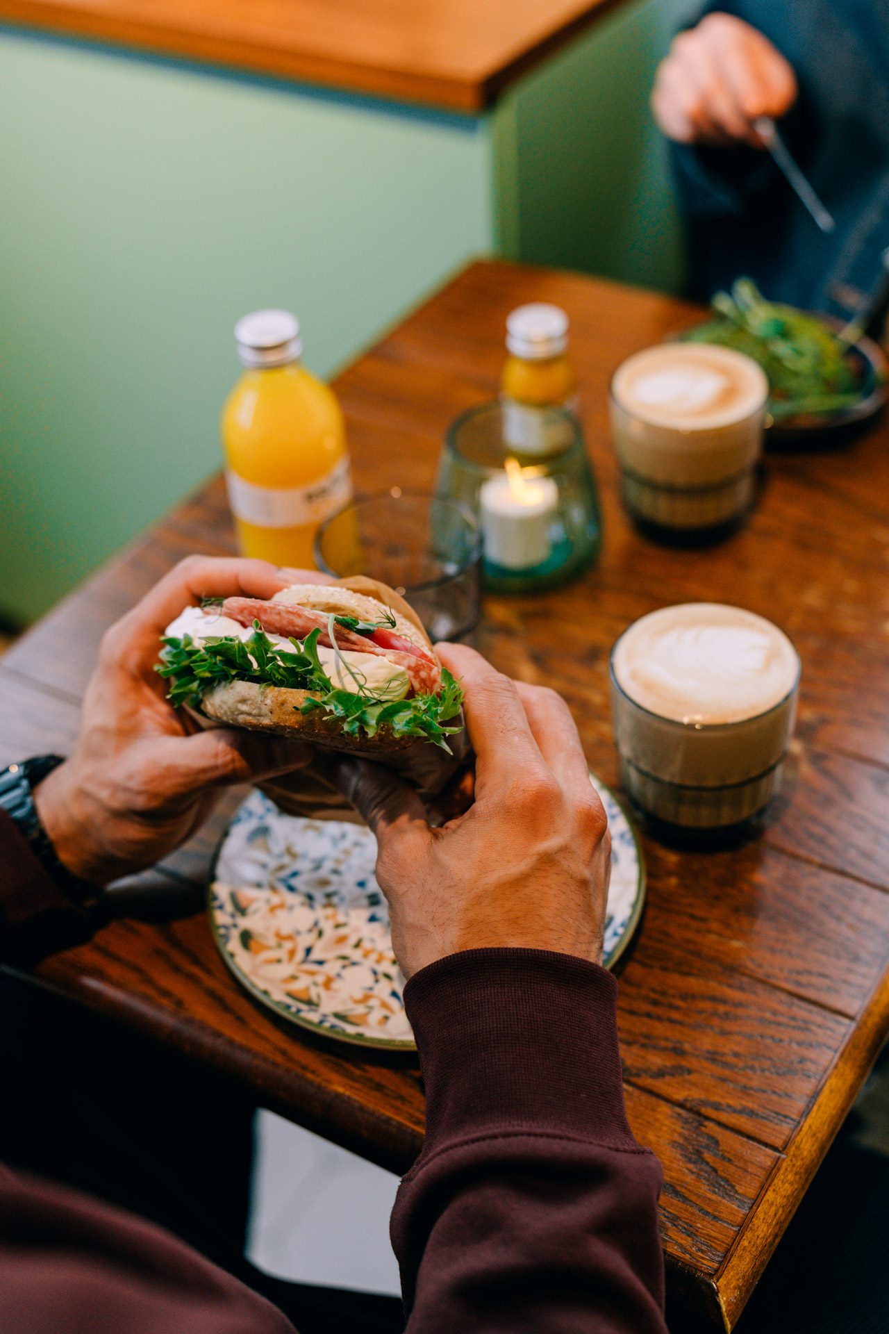 Vi serverar frukost, lättare luncher och svenska klassiker. Från kanelbullar och söta bakverk till generösa smörgåsar.