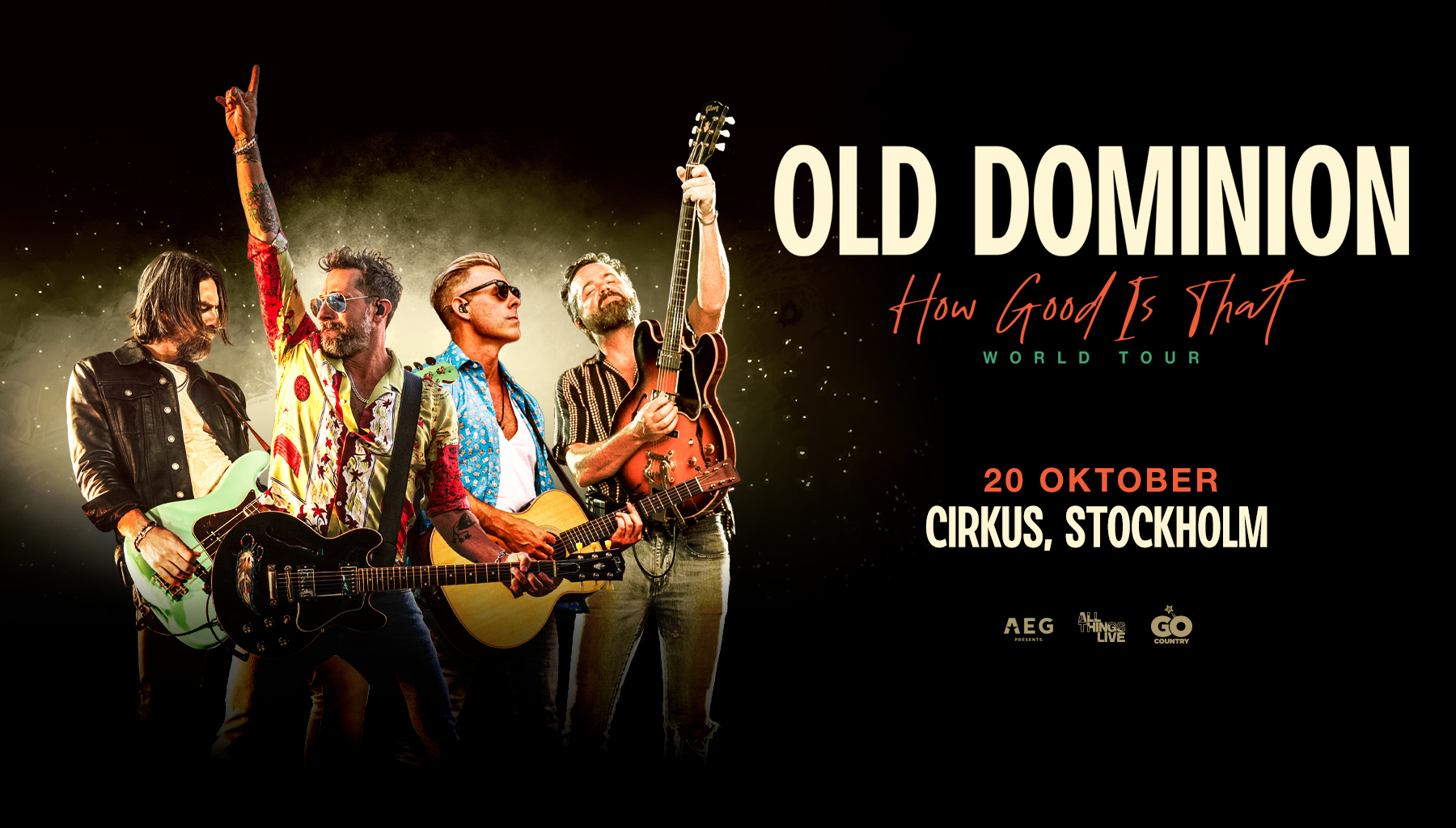 Old Dominion har med sina mäktiga låtar och elektriska liveframträdanden etablerat sig som en av countrymusikens främsta grupper. Med en kombination av genomtänkta texter och ett smittsamt sound har de skapat en vinnande kombo som gjort dem till en av Nashvilles hetaste akter. Det är ingen överraskning att Rolling Stone beskrivit dem som ”en av countrymusikens populäraste livegrupper.” 20 oktober kommer de till Stockholm för en spelning på Cirkus.
