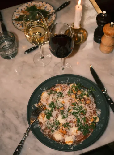Mat och dryck på Backstage handlar om smak och atmosfär. Från en generös frukost och avslappnad lunch till middagar som fungerar lika bra före en show som för långa samtal.