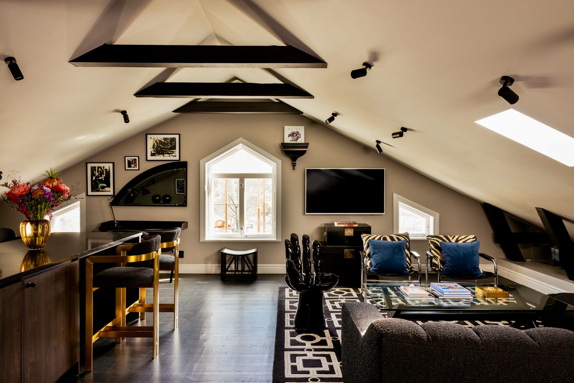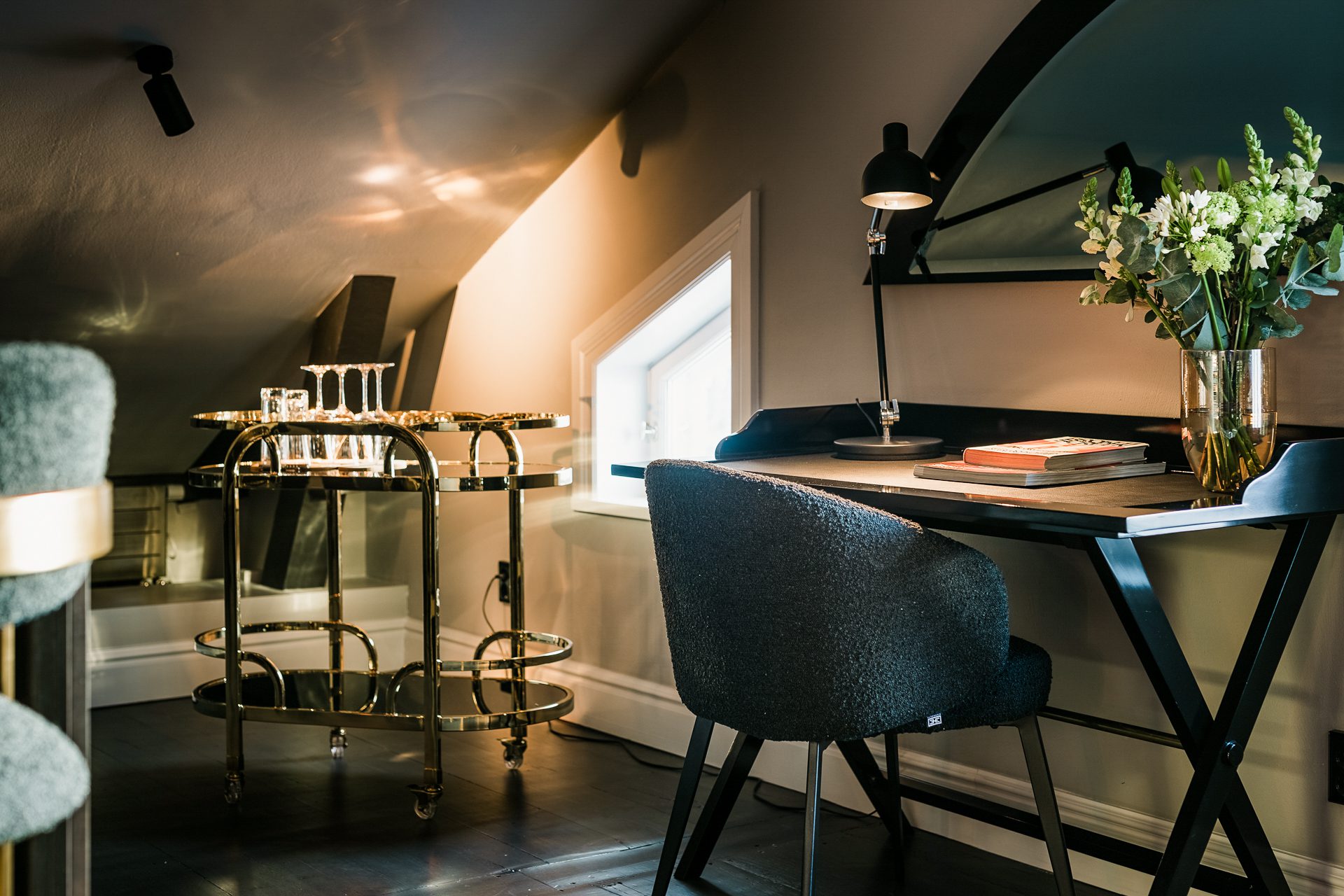 Beläget precis under taket på vår byggnad från 1880 är denna svit en mysig och privat fristad. Designmöbler från Eichholtz och POLSPOTTEN för det lilla extra säkerställer en lyxig upplevelse.